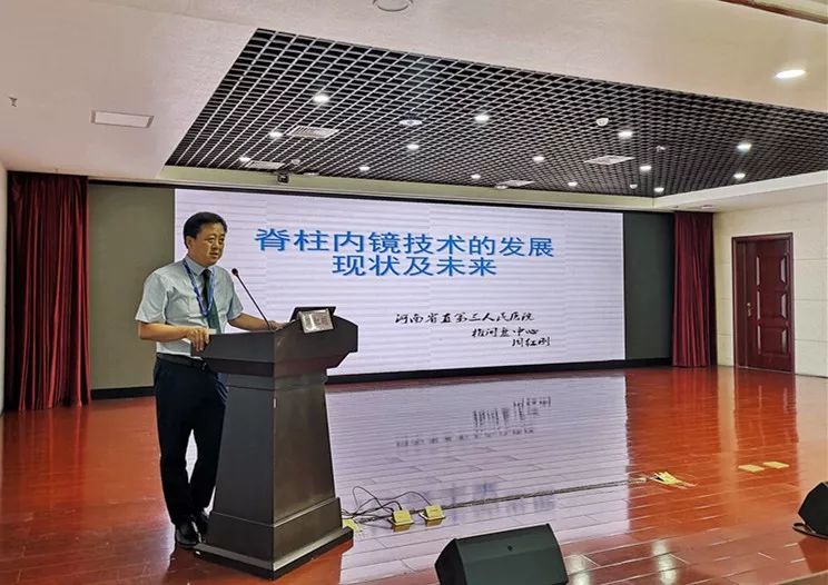 椎间盘中心主任周红刚则围绕《脊柱内镜技术的发展现状与未来》一题,总结了我院在脊柱内镜方面的发展历程,从单纯腰椎椎间盘摘除术的1.0技术到骨性减压的2.0技术,内镜技术全脊柱覆盖的3.0技术再到镜下融合技术的4.0技术成功开展,椎间盘中心一步一脚印,踏踏实实不断向新技术迈进,占据了目前脊柱内镜的制高点。