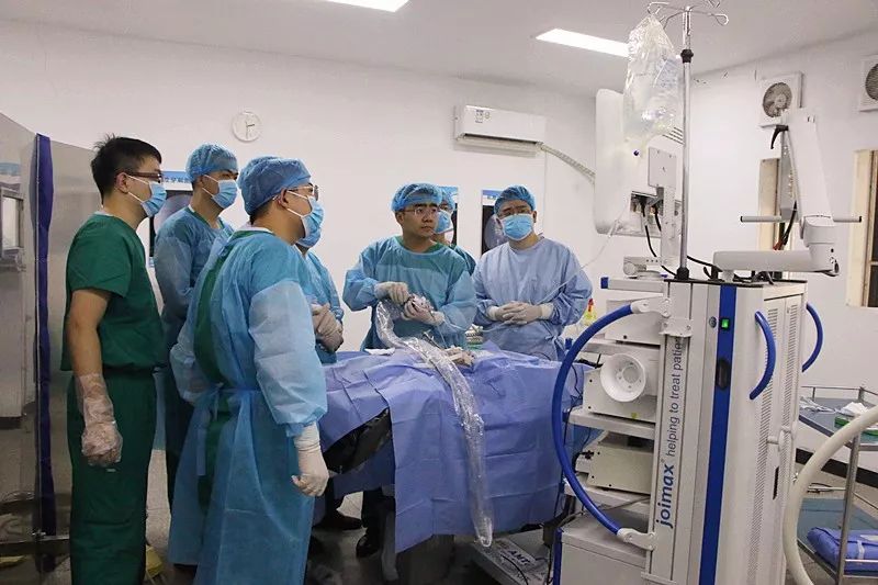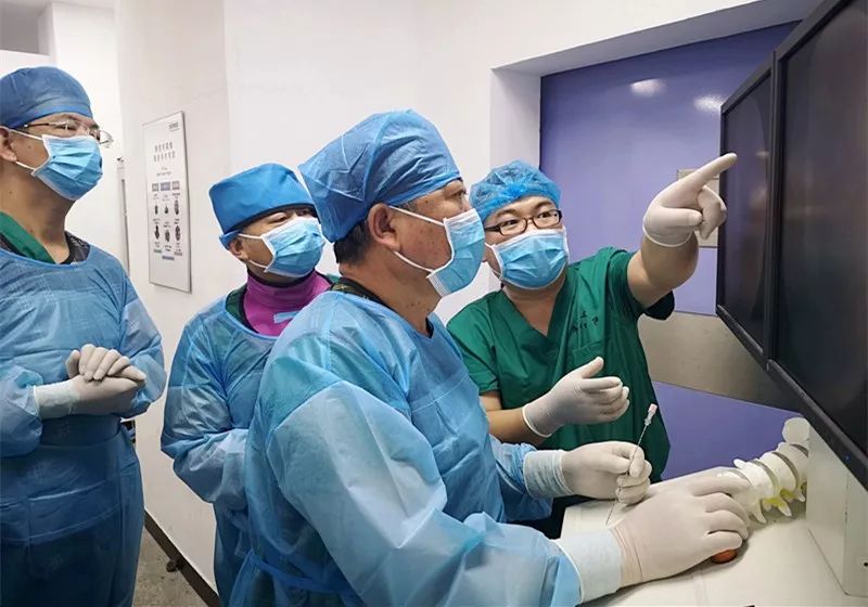 杨贺军医生、李星晨医生与学员们熟悉器械设备